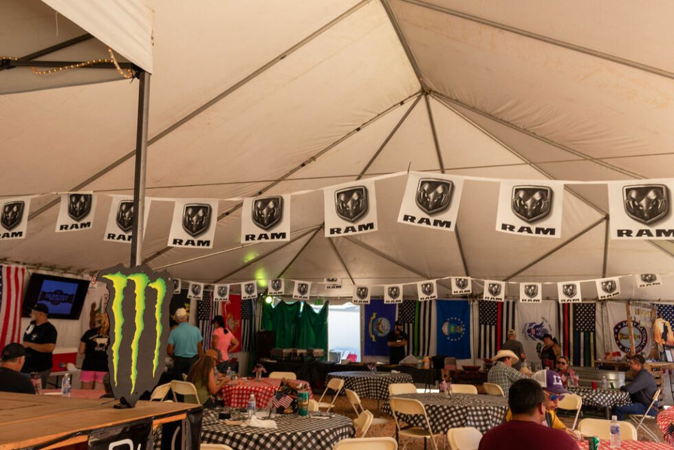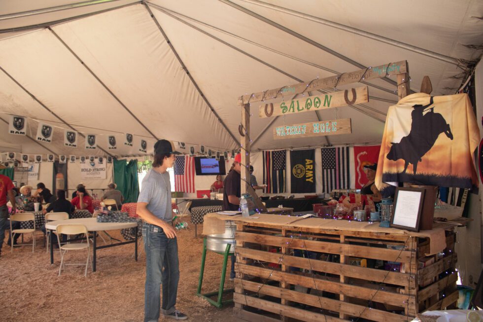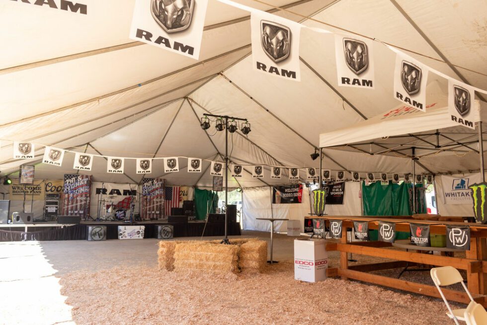 Cowboy hospitality provides an area for the stock contractors, judges, contestants and rodeo personnel to have a hot meal, snacks and beverages during their stay. Our hospitality tent is located on the west end of the grounds by contestant parking. The tent opens two hours before each rodeo performance and closes at bull riding to prepare for the After Party dance.  Each performance is shown via live feed in the tent. You must show a contestant hospitality band to enter the Hospitality Tent. You can get this from the Secretary’s office when you check in.